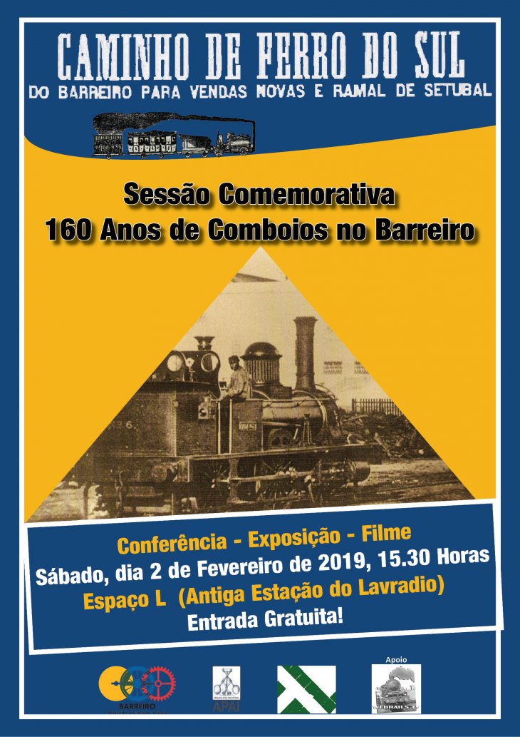 A Associação Barreiro Património Memória e Futuro (ABPMF) e a Associação Portuguesa de Arqueologia Industrial (APAI) realizam no sábado, dia 2 de fevereiro, pelas 15h30, no Espaço L - antiga Estação do Lavradio, uma sessão comemorativa dos 160 Anos de Comboios no Barreiro, sob o tema “Complexo Ferroviário do Barreiro: a importância de uma história e património em processo de classificação nacional”, precedida por uma visita guiada à exposição sobre o caminho-de-ferro no Barreiro.