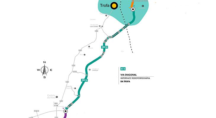 - Com a rotunda existente na EN14 que irá permitir a ligação da Variante ao Interface Rodoferroviário da Trofa e a sua continuidade para Norte.