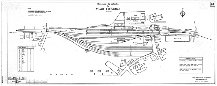 Diagrama de linhas (mapa da estação) da Estação Ferroviária de Vilar Formoso datado de 1992. Arquivo Técnico Infraestruturas de Portugal.