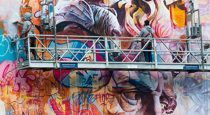 A proposta artística desenvolvida pela dupla de artistas espanhóis PichiAvo, conhecidos pelas suas intervenções associadas à mitologia grega, mostra um diálogo entre a antiga harmonia da arte clássica com a rebeldia do graffiti moderno, numa solução de grande visibilidade, impacto, interesse estético e valor, indo naturalmente muito além do que resultaria de um mero processo de reabilitação da empena.