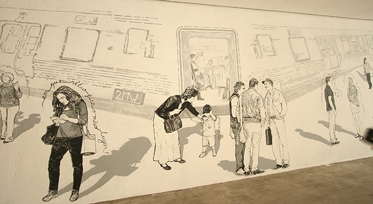O trabalho foi desenvolvido sobre um mural realizado pela mesma artista em 2013 onde eram representadas 111 pessoas: passageiros; funcionários da estação; maquinistas dos comboios; transeuntes; habitantes do Bairro do Rego, explorando um conceito de afinidade coletiva com o local, e cujo simbolismo se foi perdendo com o tempo em virtude da multiplicação de inscrições que sobre ele foram sendo efetuadas.