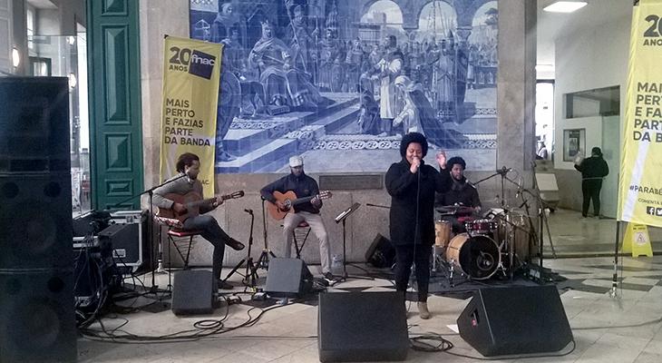 Luiz Caracol (nas imagens atuando no Cais do Sodré), The Legendary Tigerman (Oriente), B-Fachada (Cascais) e a artista cabo-verdiana Lucibela (foto do concerto em São Bento) surpreenderam passageiros e outros utentes daquelas estações com as suas breves atuações, que assinalaram ao longo do dia o 20.º aniversário da FNAC.