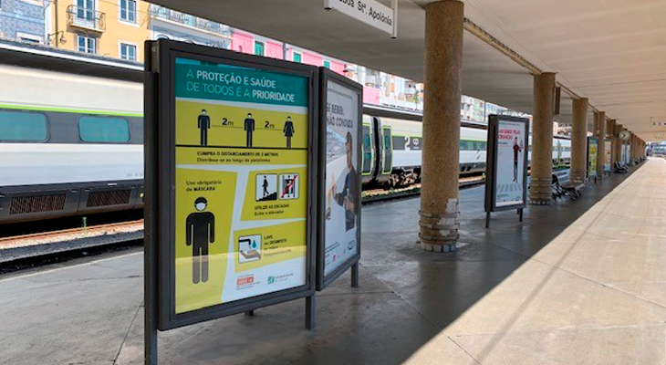 Para além disso, tem ainda anúncios sonoros nas estações ferroviárias a recordar o uso obrigatório de máscara, a necessidade do respeito de distanciamento físico entre os passageiros e as boas práticas de higienização.
