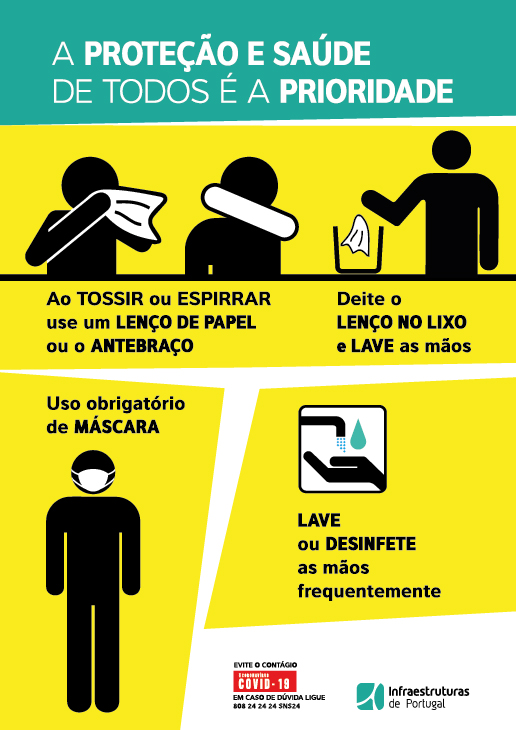 Para que todos possam chegar ao seu destino com a segurança e tranquilidade que merecem, a Infraestruturas de Portugal está a proceder ao reforço das medidas de combate à Covid-19.